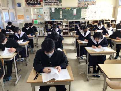 3年生は、中学校生活最後の学年末テストに挑んでいます。