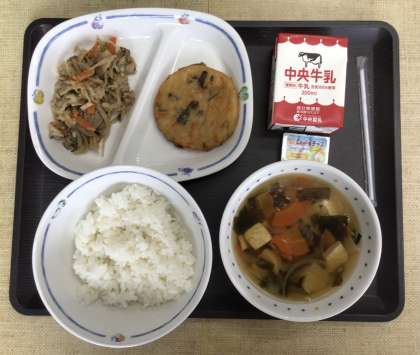 3/12 今日の給食 公開日 2025/03/12 更新日 2025/03/12 各学年から 今日の献立は、ワカメスープ、切り干し大根のチャプチェ、チヂミ、角チーズ、ごはん、牛乳、でした。エネルギー:809kcal