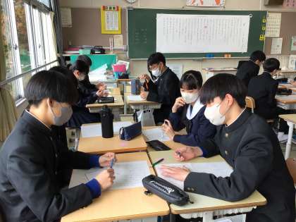 早いもので2月も最終日になりました。3年生の教室では、卒業式で歌う「証」の歌詞を生徒が深く考える姿がありました。「意志を感じる」「3歳の時から一緒だったから離れるなんて信じられない気持ちかな」という言葉が聞こえてきました。
