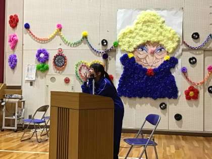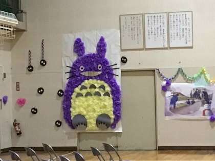 3月3日、卒業を祝う会を実施しました。1・2年生が担当に分かれ、心を込めて準備しました。会場は、ジブリをテーマにした掲示で飾られ、あたたかい雰囲気に包まれていました。
