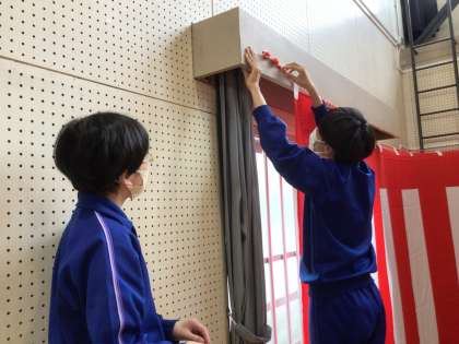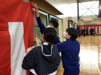 最初は殺風景な体育館が、たった1時間の在校生の活動で、華やかに仕上がりました。