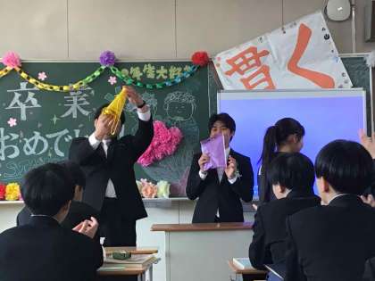 卒業式に向けて、3年生の学年主任、担任をはじめ、心を込めて準備を進めてきました。涙がかわいた後、晴天の下、笑顔で卒業した3年生。卒業生30人の新しい門出を、心からお祝いします。