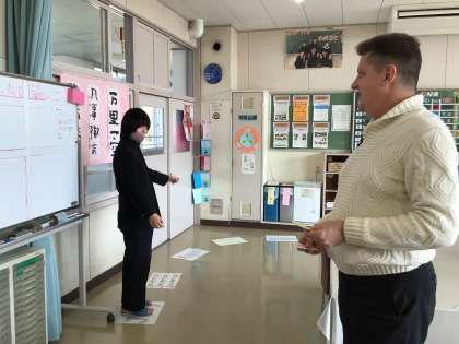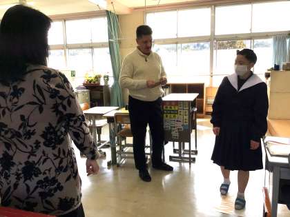 3・4組では、ALTのジョン先生と英語の授業を行いました。体を動かしながら、日常で使う英語を中心に楽しく学びました。