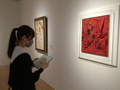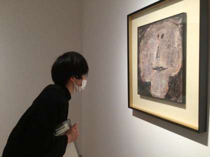 コレクション展の見学は、国語科の授業「お気に入りの絵について、評論文を書く」ための活動をメインとして行いました。生徒たちは、美術館見学の前に美術館から送られてきた写真を見て、評論文を書いていました。ところが、実際に本物の絵を見ると、写真を見た時のイメージと違った様子。