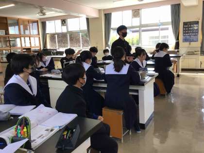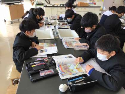 1年生の理科では、地震が多い地域の特徴を、地層と関連付けながら考える授業に取り組みました。複数の資料を見比べ、真剣に考えていました。日本が地震が多い理由を見つけ、備えの必要性を改めて感じていました。