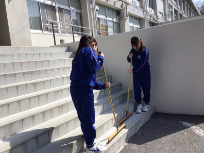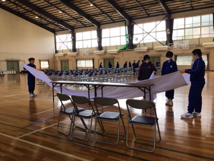 4月8日(火)、明日の入学式・始業式の準備のために、新2、3年生が登校しました。