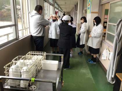 2、3年生は、効率よく、清潔に、素早く配膳を終えました。