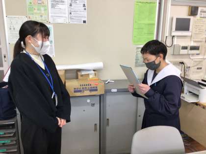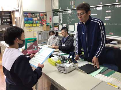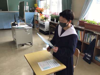 自立活動の「コミュニケーション活動」として、新しく石野中学校に赴任した先生に「自己紹介」と「インタビュー」を行いました。