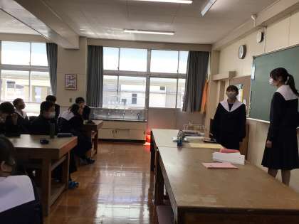 学校生活をよりよくするために、生徒が中心となって活動する委員会活動がスタートしました。3年生を中心に、委員長を決め、活動の目標をスローガンにするなどの活動が、生徒の司会で進行しました。本年度から米作り委員会が発足し、生徒がより主体的に米作りに携われるようにします。