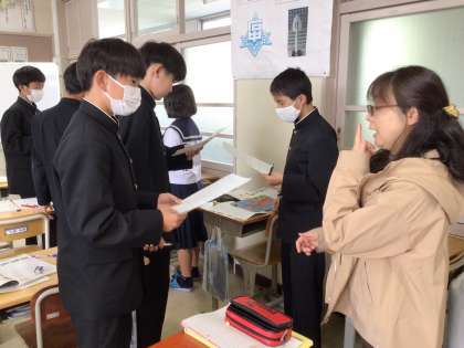 2年生の英語科では、春休みの思い出を英語で伝える時間がありました。何度も練習するうちに、流暢な英語で伝えることができるようになりました。