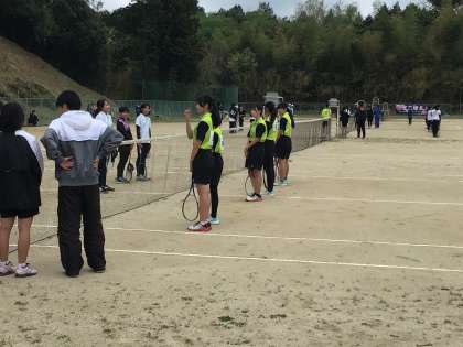 天候により順延されていた春の市民総体(中学生ソフトテニス選手権大会)が、4月20日(日)に開催されました。女子の団体戦は下山中会場で、小原中、下山中との3校リーグを行いました。