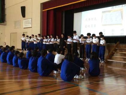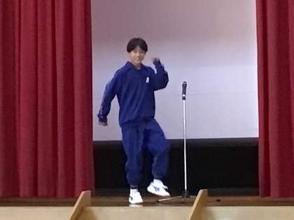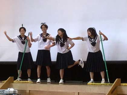 はじめに、3年生の級長、副級長が会を盛り上げる演出をし、1年生が自己紹介をしながら入場しました。その後、情報文化部による学校紹介がありました。