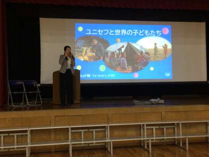 5月9日(金)に、ユニセフキャラバンの「ユニセフ教室」が石野中学校で実施されました。