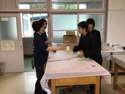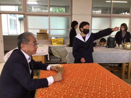 来校されてみえた鈴本議員にお声がけし、ニコニコカフェに来ていただきました。席への案内の際に、椅子をひいて「こちらへどうぞ」と声がけし、適切なコミュニケーションをとる学習の成果を発揮する姿を見ていただきました。