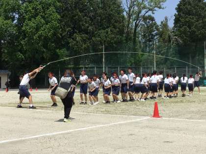 例年通り、給水タイムは楽しく盛り上がりました。しっぽ取りは声援に応えてB団が勝利しました。長縄は、A団が勝利しました。