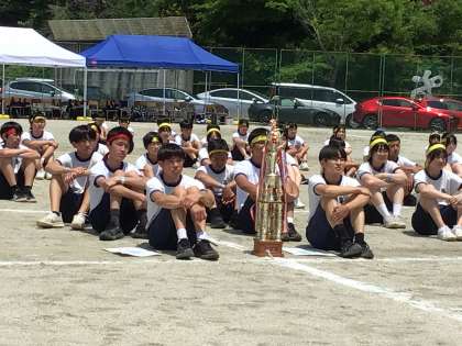 A団リードで進んだ競技得点は、リレーでB団が追いつきました。引き分けで、A団、B団、共に優勝。閉会式では、楽しかったと満足そうな生徒の笑顔がありました。