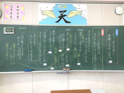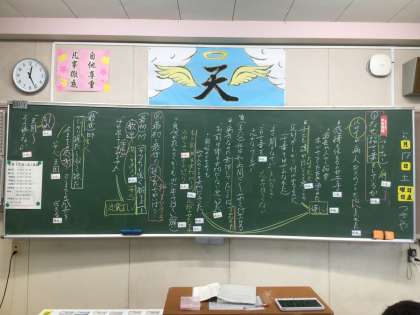 次に、タブレットのスカイメニューを活用してグループで共有しました。最後に、全体で話し合いをし、考えを深めました。