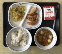 今日の献立は、サンドイッチバンズ、コーンチャウダー、アーモンドサラダ、ハムバーガー(中濃ソース・バーガー用)、牛乳、でした。エネルギー:736kcal