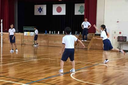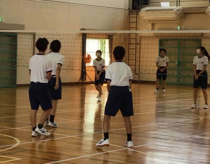 3年生の体育では、3年間で身につけてきた技能を生かしてバレーボールのゲームに取り組みました。得点が入るたびに、チームで声を掛け合う姿がありました。