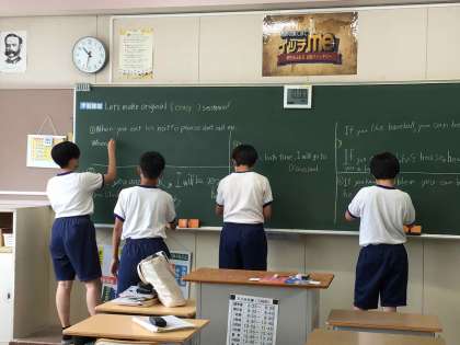 ALTの先生と一緒に、「When」や「If]を使った楽しい英作文に取り組みました。生徒は、面白い文章をグループで決め、学んだ単語や文法を使って、英語で表現できるように考えていました。