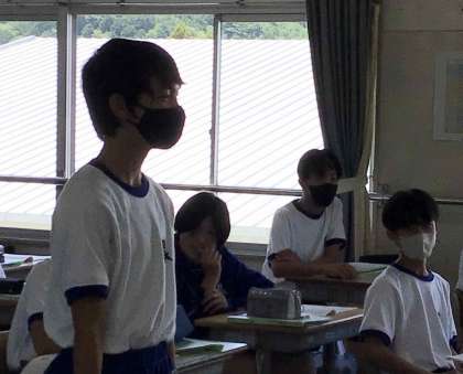 1年生の国語科の授業では、文法の学習に取り組んでいます。単語に分ける学習では、文がどこで単語に切れるか予想し、理由を考えながら話し合いました。「持って」が「持つ」と「て」という単語から成り立っていることに気づいた時には、予想との違いに驚く生徒が多くいました。