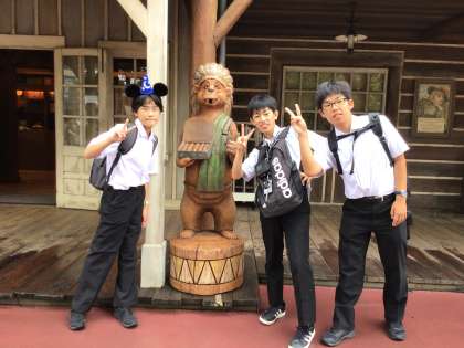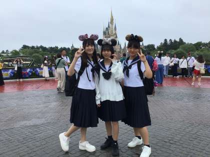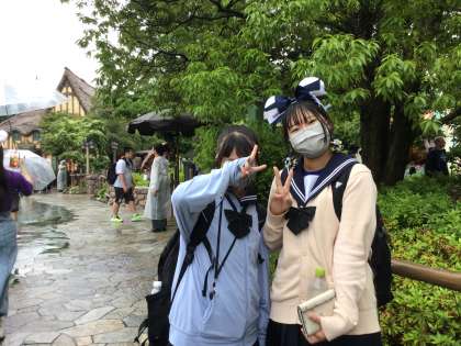 ディズニーランドに到着した時は、雨はあがっていました。傘が必要になってきましたが、それぞれの班のペースで楽しんでいます。