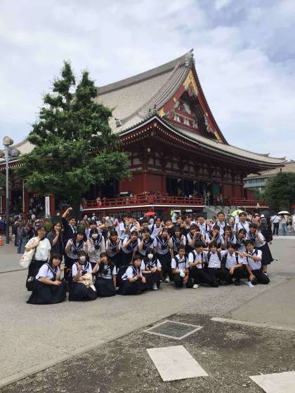 修学旅行最後の目的地、浅草に到着。全員で集合写真を撮ってからグループ行動です。
