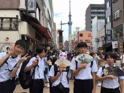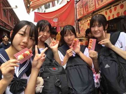 外国人観光客が多く混み合っていた浅草ですが、グループごとに好みの昼食を取ったり、お土産を買ったりしました。