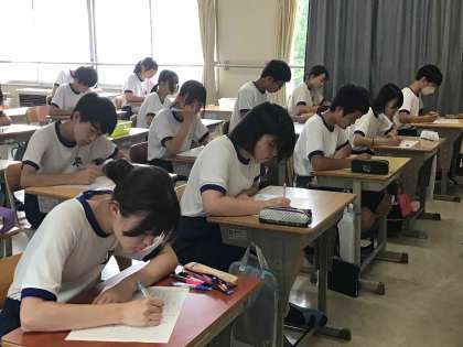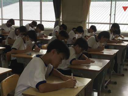 基礎基本の学力を身に付けるために、全校でIBテスト(石野ベーシックテスト)に取り組んでいます。生徒が合格を目指して努力した成果が発揮できるように、一人ひとりに応じた声かけをして支援しています。