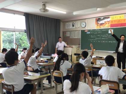 2年生の英語の学習では、不定詞の勉強をしています。〜のために、という表現方法を理解して使えるようにするために、ALTの先生と一緒に確認しながら学習を進めました。