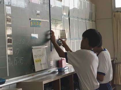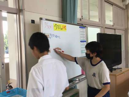 毎朝、各学級で目標を立て、充実した1日が過ごせるようにしています。個人の目標やグループでの目標を設定し、帰りの会で振り返ることで自分の頑張りや級友のよさを確認できるようにしています。