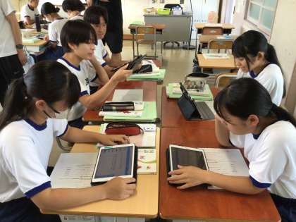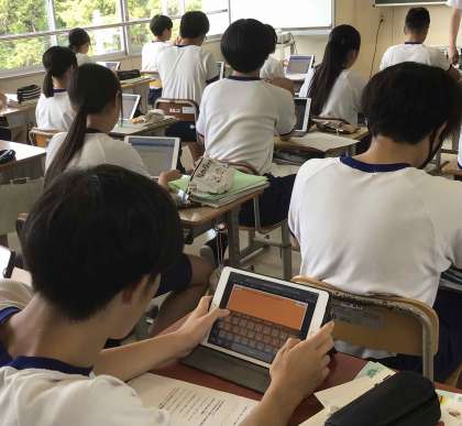 3年生の国語科の授業では、俳句を題材に自分の考えを伝えたり、級友の考えを聞いて自分の考えを深めたりしました。学習用タブレットを活用し、全員の考えが共有できるように工夫しています。