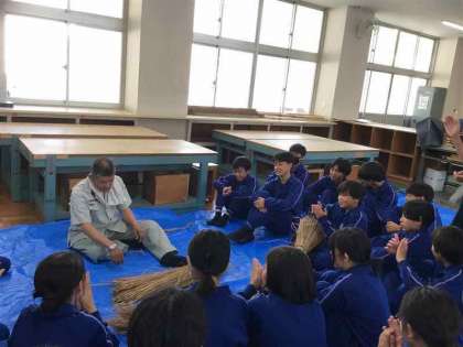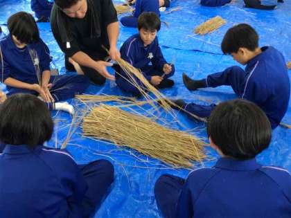 今日はすがい作りがありました。敏朗さんからすがいの作り方を教えていただきみんな一生懸命取り組みました。すがいを作る時稲をクルクルとしてそれをどんどん交差していく作業があってそこが特に難しかったです。すがいは長い歴史を持っていることも知れたし、昔のお米を育てている人の苦労を感じました。