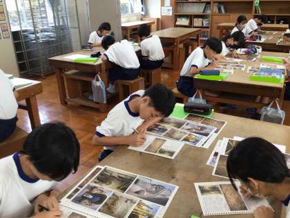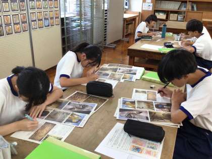1年生の美術科の学習では、メソポタミア文明の作品について鑑賞しました。装飾的、写実的というキーワードを意識して、どう描かれているかをじっくり鑑賞しました。