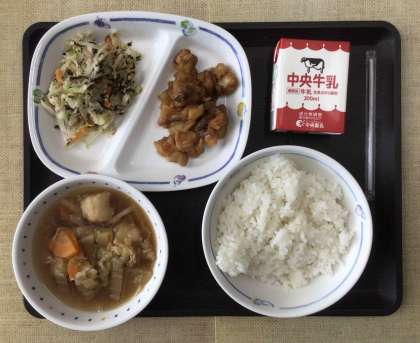 9/17 今日の給食 公開日 2025/09/17 更新日 2025/09/17 各学年から 今日の献立は、ごはん、エビ団子汁、海苔酢和え、レバーとジャガイモの甘辛煮、牛乳、でした。エネルギー:835kcal