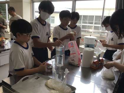 生徒たちが無洗米を使って準備をしています。