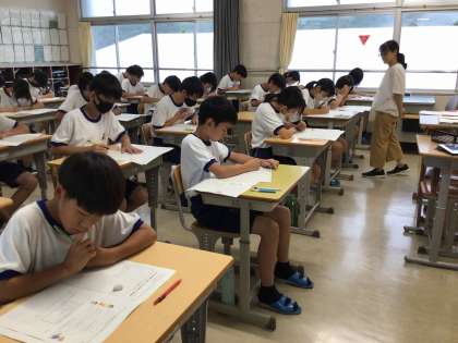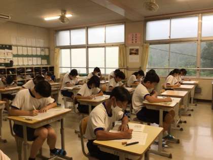台風の影響が心配されましたが、1日目の定期テストを実施できました。生徒は、雷や雨の音に気を取られることなく、集中してテストに取り組んでいます。