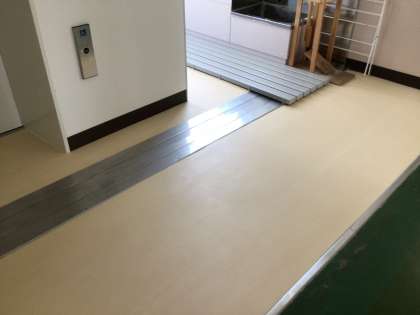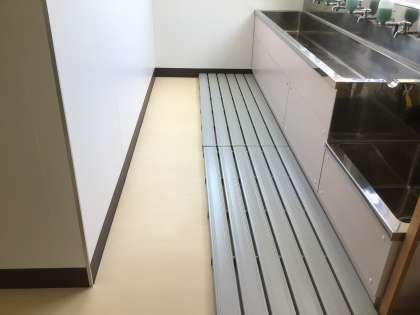 3階手洗い場の床を保健の先生が掃除をしてくださいました。