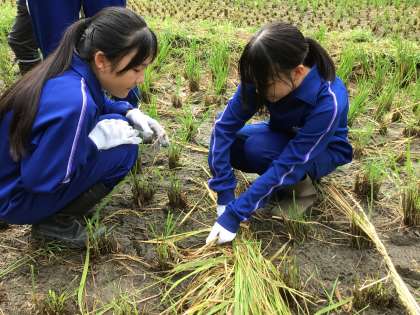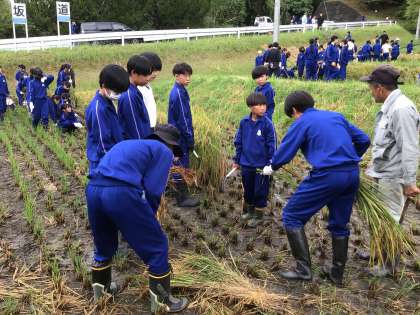 全校で行った稲刈りですが、最高学年として3年生がリードする姿が光りました。