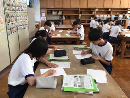 1年生の美術では、手をモチーフにしたデッサンに取り組みました。鉛筆を使って薄い線で輪郭を描き、消しゴムを使わずに修正しながら短時間で描きました。3年生では、学んだ技術を使って手に物を持ったデッサンをする予定です。技術の向上を実感する機会になっています。