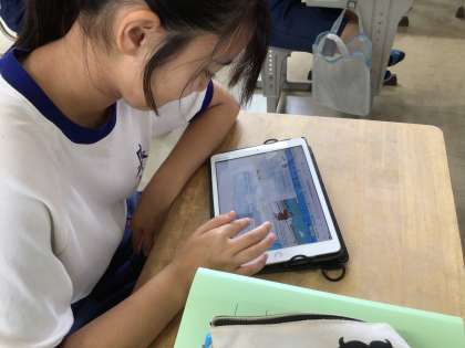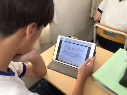 今日はそのために、観点(どこに注目したか)ごとに分析をしました。写真は、各自でタブレットを使って、分析をしている様子です。