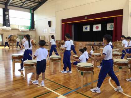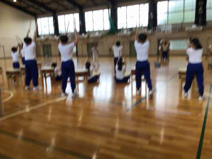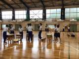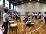 勘八太鼓を選択している生徒は、息の合った演奏にするために毎朝自主練習をしています。指導をしてくださる講師の先生熱のこもった指導を受け、自信をもって演奏できるように努力しています。