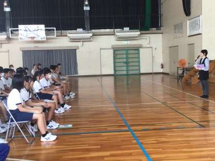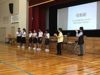 地域学校共働本部と連携して講師をお招きし、デートDVについて学ぶ学校保健委員会を開催しました。全校生徒、保護者、人権擁護委員など、地域の方にも参加していただきました。自分らしさも相手の権利も大切であることを、ロールプレイや講義等で具体的に学ぶことができました。