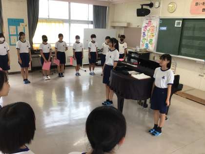 火曜日の給食後、3回めの全校合唱練習を行いました。