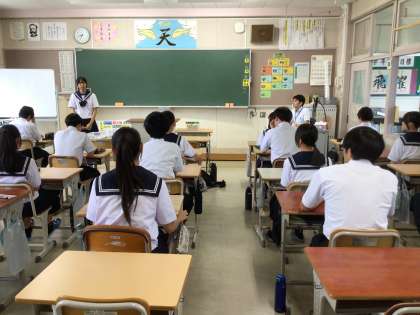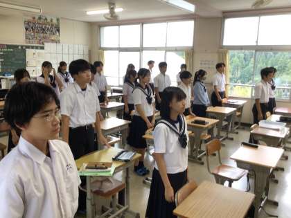 3年生の前期最終日、朝の様子です。 クールビズ期間が終わり、この日から制服登校です。