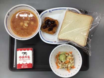 11/6 今日の給食 公開日 2025/11/06 更新日 2025/11/06 各学年から 今日の献立は、スライスパン、ミネストローネ、ビーンズサラダ、フィッシュサンド(中濃ソース)、牛乳、でした。エネルギー:798Kcal