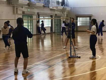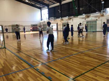 2年生は、体育科の授業でバドミントンに取り組んでいます。タイマーの合図で対戦相手や得点係をかえ、目一杯活動していました。体育館に楽しそうな歓声が響いていました。