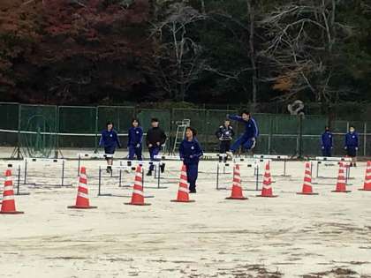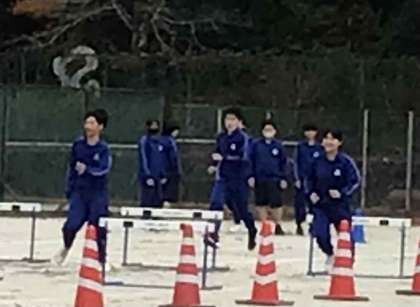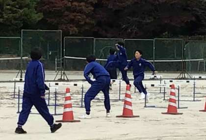 体育の授業でハードル走の学習が始まりました。3歩でハードルを跳び越えられるように1、2、3とリズムをとりながら、練習する生徒の姿がありました。
