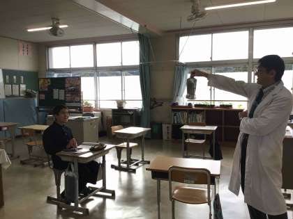 2年生の理科では、気象要素と天気の変化との関係について学んでいます。気圧や温度と空気の体積との関係について、実験や映像資料を活用しながら考えました。