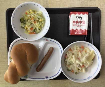 12/11 今日の給食 公開日 2025/12/11 更新日 2025/12/11 各学年から 今日の献立は、ツイストパン、マカロニのクリーム煮、サワーキャベツ、ウインナー、コーヒー牛乳の素、牛乳、でした。エネルギー:858kcal